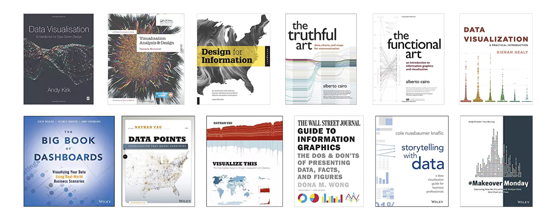 I looked at the covers of other contemporary data visualization books and noticed two things. Many modern dataViz books have a lot of white on their cover. Many modern dataViz books feature some kind of statistical chart. They are cartoon icons of charts, cropped dashboards, or complex graphs. You cannot understand the meaning of any of these charts from the cover alone.